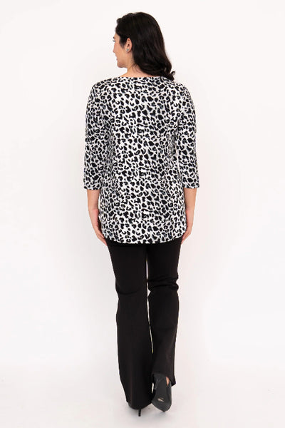 The Jazz has a forgiving fit, with 3/4 length sleeves, and a design that allows the fabric to flow away from the body. A longer hem in the back provides coverage. Blue Sky's Signature Bamboo fabric makes the Jackie breathable and thin enough for layering.