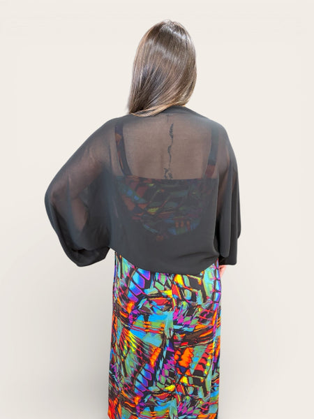 This chiffon sleevey is perfect for any dress or top that leaves you with exposed shoulders or arms. Wonderful for a dressy occasion, hot holiday or summer dinner out.