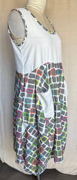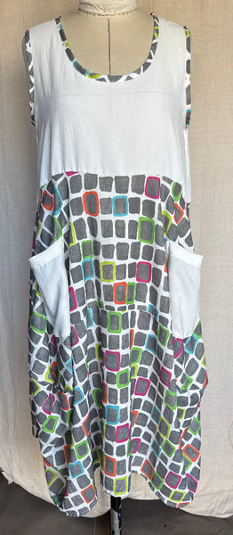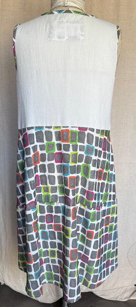 Meet your new standout piece. This multicoloured round neck, sleeveless dress is crafted from 100% rayon, giving it an ultra light breathable feel you'll reach for time and time again. Designed in a relaxed cocoon silhouette, it billows beautifully before tapering in for that effortlessly flattering shape. And yes- pockets included.