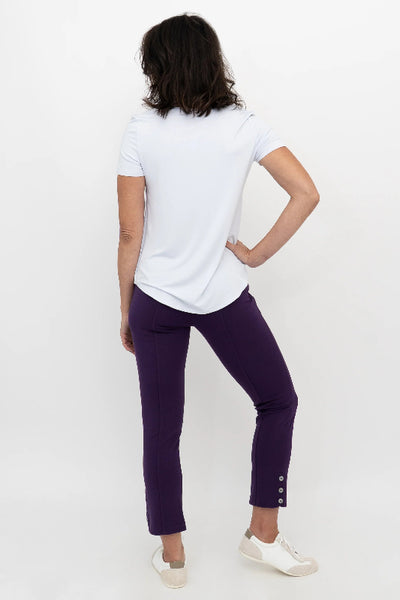 A take on our popular Nadia Pant. Plant-based Modal fabric gives the Nadine structure in a capri length with three cute buttons on the outside cuff. Featuring two hidden pockets that fit your phone. This sleek capri fits any wardrobe.