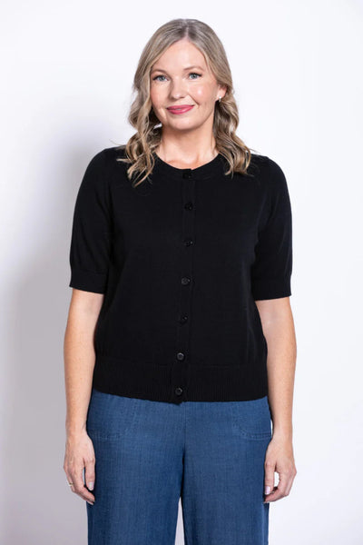 Blue Sky's Shen Cardigan features a round ribbed neckline, short sleeves with ribbed cuffs, and a ribbed hemline. It sits right at the hips and is made from soft, breathable cotton to keep you comfortable all day long.