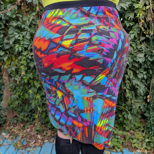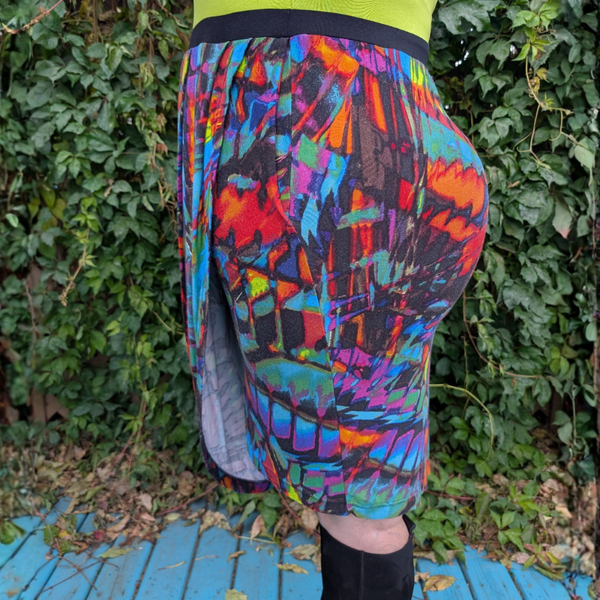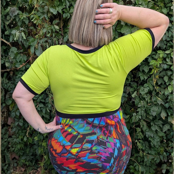 Samples in-house at Fem, choose your colour or print of fabric with what we have available. Featured in these photos is our city print with chartreuse, trim in black.Â